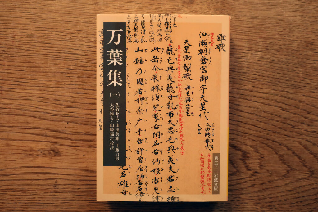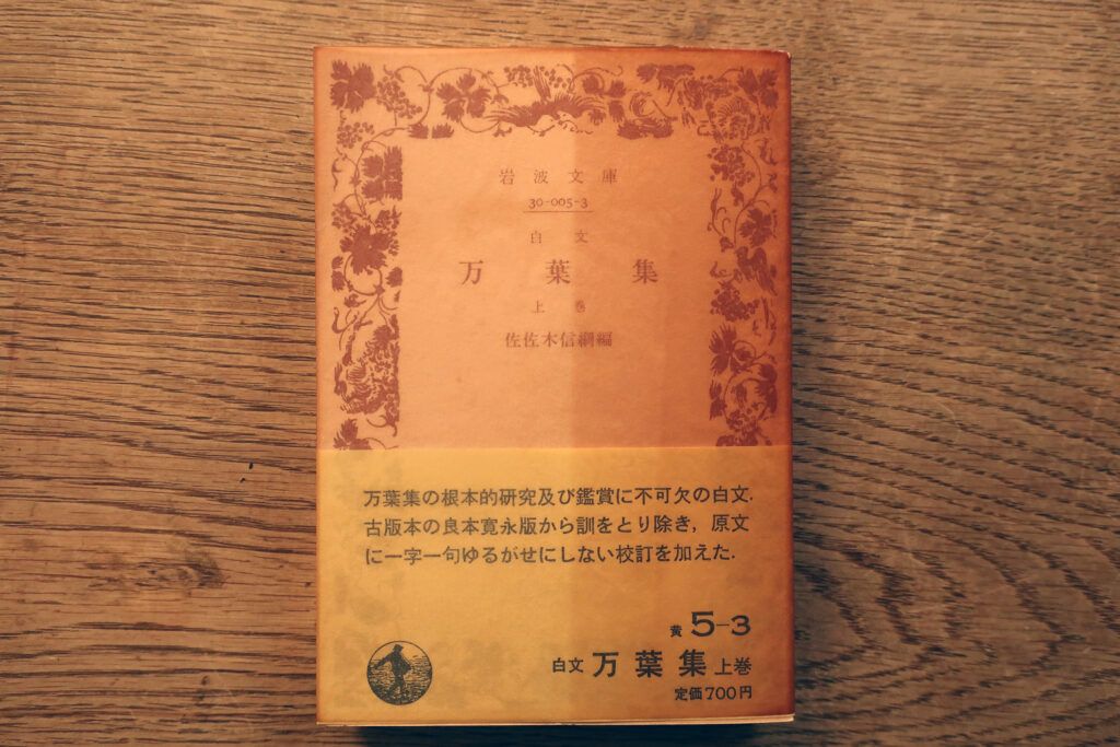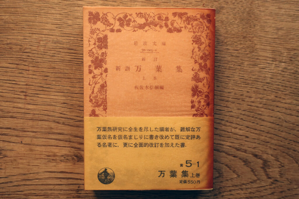 岩波書店の新日本古典文学大系『万葉集』(佐竹昭広・山田英雄・大谷雅夫・山崎福之・工藤力男 校注)。訓み下し文・原文を掲げ、脚注(口語訳・注釈)を付す。口語訳は、原文を尊重しながら、解りやすく言葉を補つてゐる。巻末に人名一覧・地名一覧・枕詞一覧を載せる。