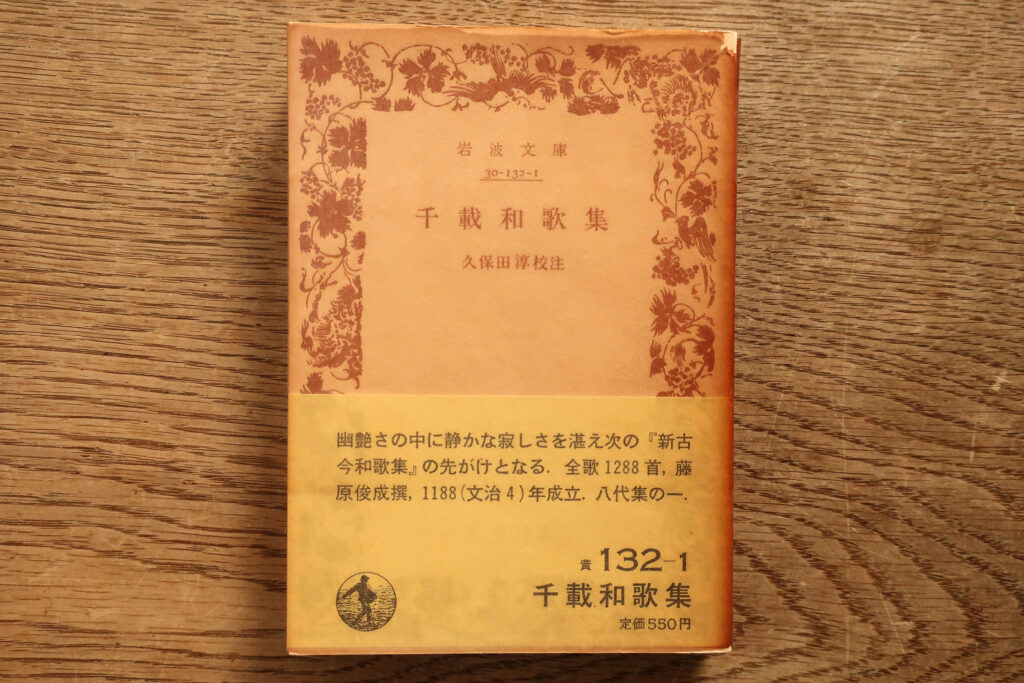 今『千載和歌集』を原文で読むのなら、携帯の便を考へれば岩波文庫『千載和歌集』(久保田淳 校注)だが、注がやや簡素なので、丁寧に読まうと思つたら、新日本古典文学大系『千載和歌集』(片野達郎・松野陽一 校注)和泉古典叢書『千載和歌集』(上條彰次 校注)がいいだらう。