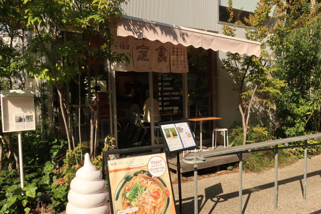 「発酵デパートメント」。日本全国・世界各地から選んだ発酵調味料や漬物・酒・発酵茶などを販売し、それらを使用した定食なども提供してゐる。