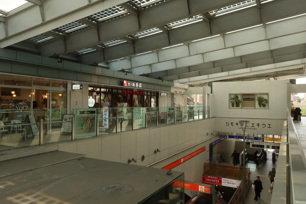 小田急線の線路跡地だけではなく、下北沢駅周辺では再開発が進み、スーパーマーケット「ピーコック」や「三省堂書店」が入つてゐた「下北沢駅前共同ビル」も建替工事中である。駅前広場は、バスロータリーになるらしい。