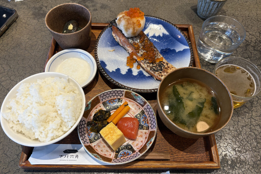 空腹を覚えたので、「下北沢駅」に戻り、井の頭線の高架下とその向かひに出来た商業施設「ミカン下北」の「下北六角」で昼餉。「鮭イクラ定食」を食す。