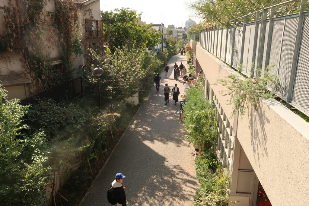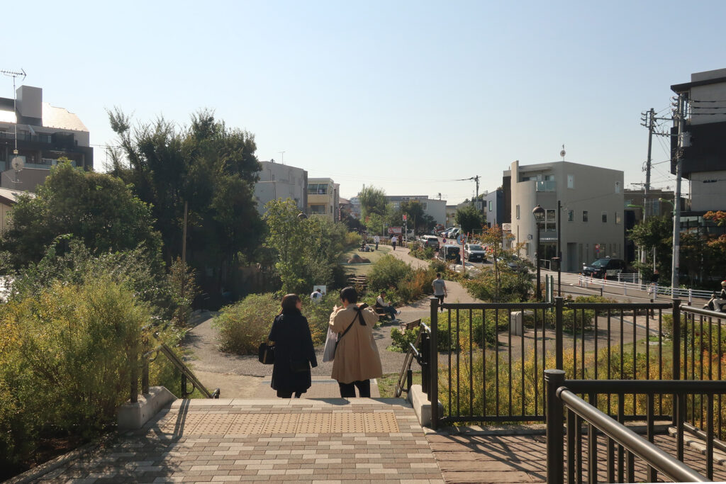 「NANSEI PLUS」から「世田谷代田駅」まで旧線路街の遊歩道が続いてゐる。