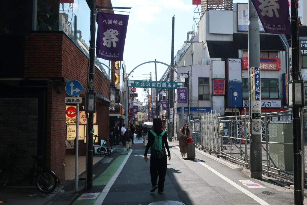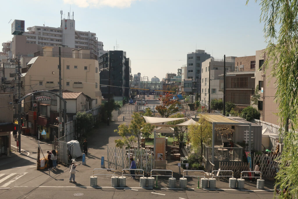 線路跡地は再開発が進んでゐるが、周辺には昔からの商店街・路地も残つてをり、多くの飲食店や古着屋が軒を連ねてゐる。ライブハウスも多い。