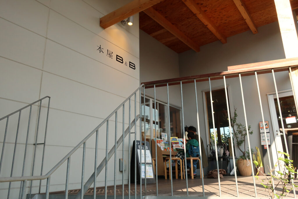 「本屋B&B」。普通の本屋のやうに新刊本やコミック・雑誌を並べるのではなく、いくつかのテーマごとに本を展示してゐる。著者によるトークなどのイベントも開催してゐる。