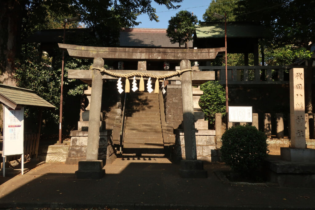 近くにある「代田八幡神社」。1591年(天正19年)創建。拝殿前の鳥居(環七沿ひにも鳥居がある)は、世田谷区内で2番目に古く、区の有形文化財に指定されてゐるさうだ。