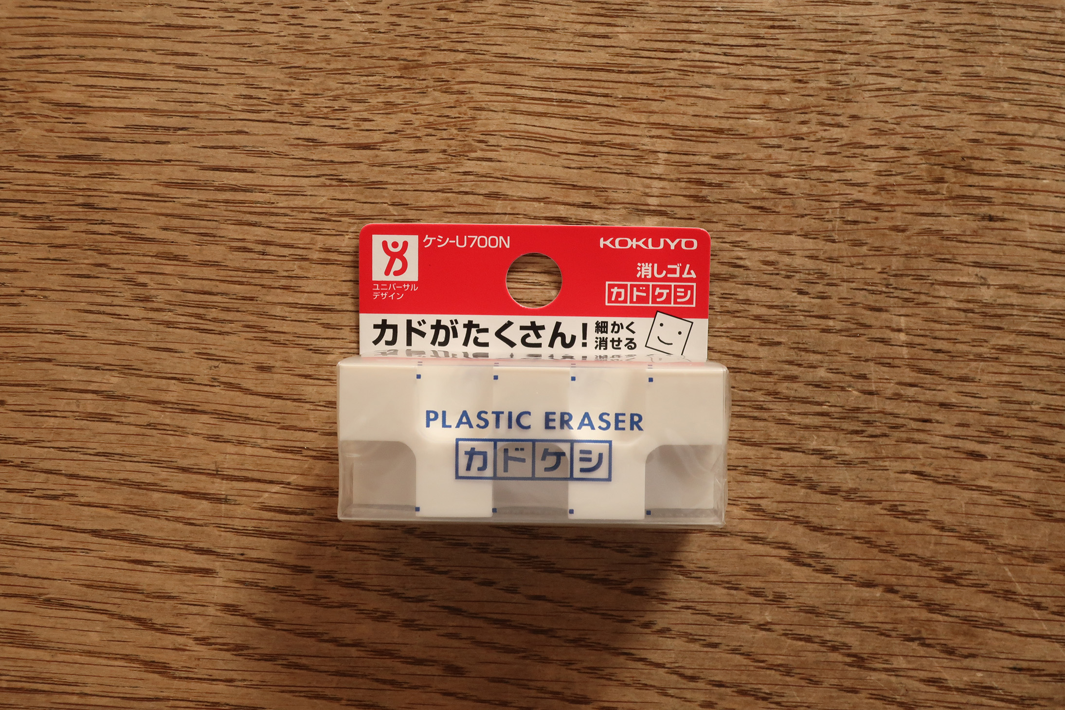 今回取り上げる「感動文房具」は、KOKUYO「PLASTIC ERASER カドケシ」である。
