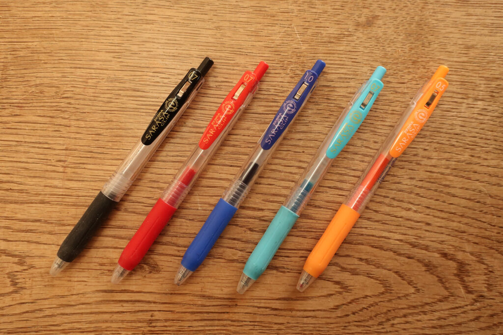 小生は、もつぱらZEBRAのSARASAを使つてゐる。いくつか試し書きをしてみてSARASAの書き味が好かつたことと他社では少ない芯径0.7mm・1.0mmの中字・太字をラインアップしてゐることである。デザインも比較的好ましく、インクの色も多彩である。