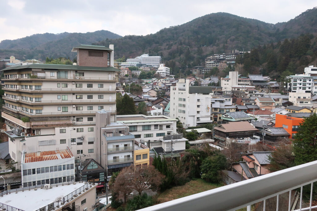 ホテルの部屋から眺めると、有馬温泉街が山間の斜面に作られたことがよく判る。
