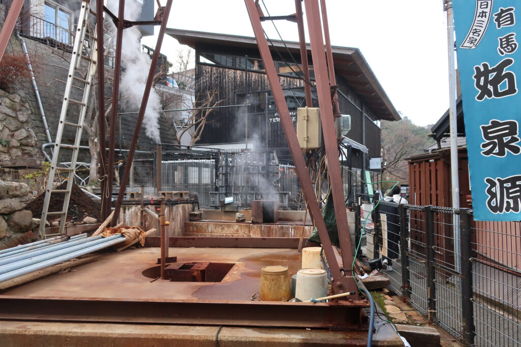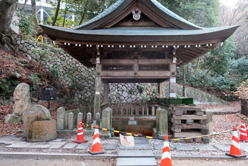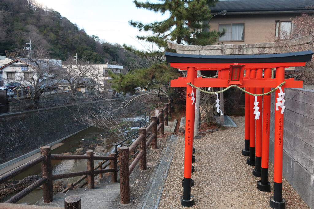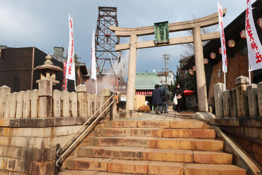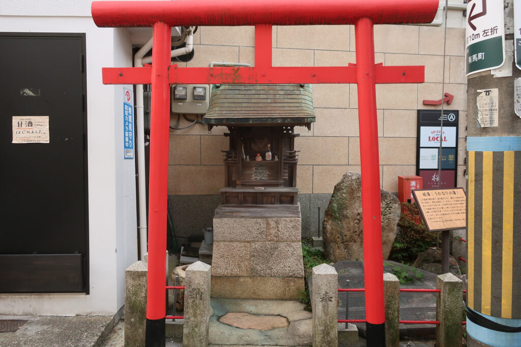 「川上商店」の角(赤いポストがある)を左に曲がると、「有馬天神社」があり、その境内に「天神泉源」がある。有馬温泉にはいくつもの〝泉源〟があるので、温泉街を廻りながら見てみようと思ふ。