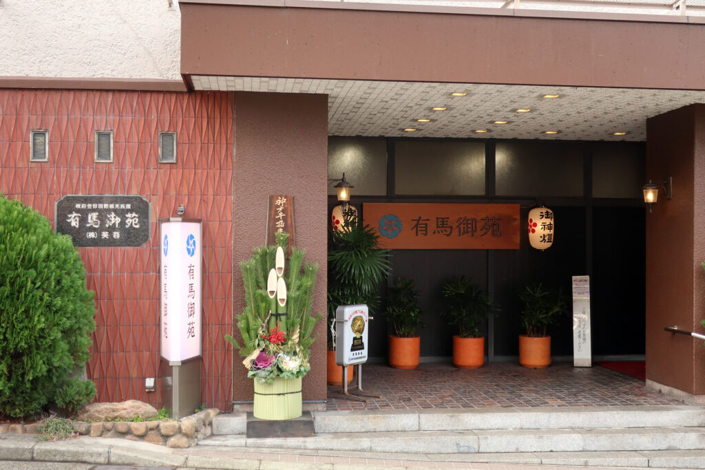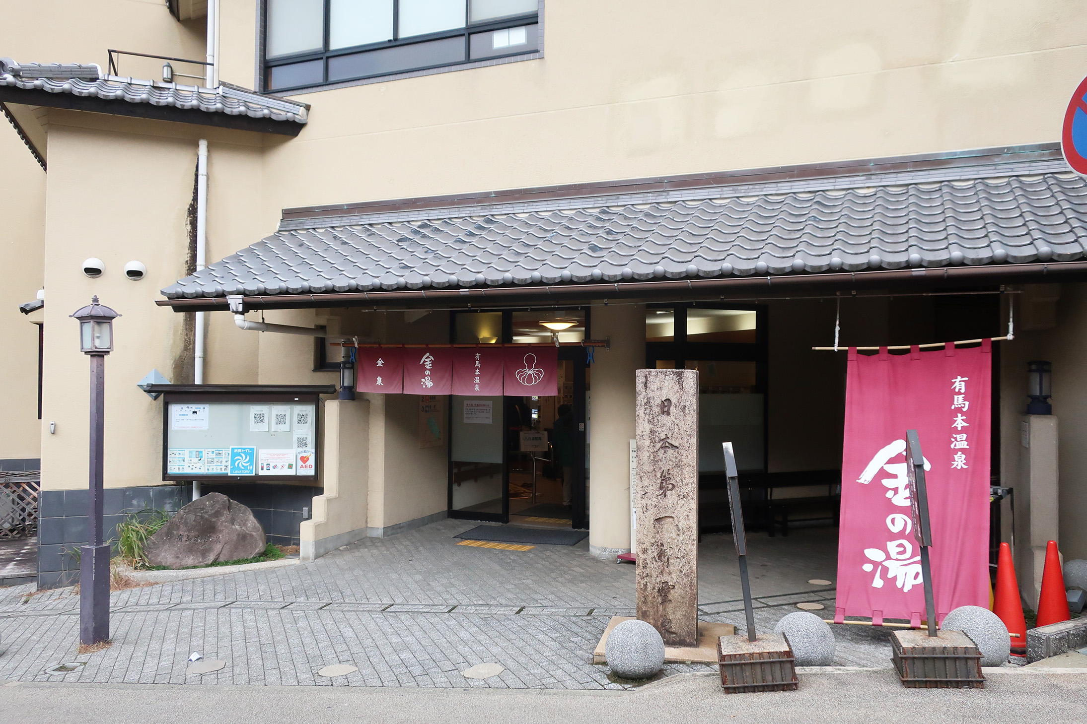 「有馬温泉バスターミナル」でバスを降りると、宿泊先の「有馬御苑」が目と鼻の先なので、荷物を預けて有馬温泉街を散策。