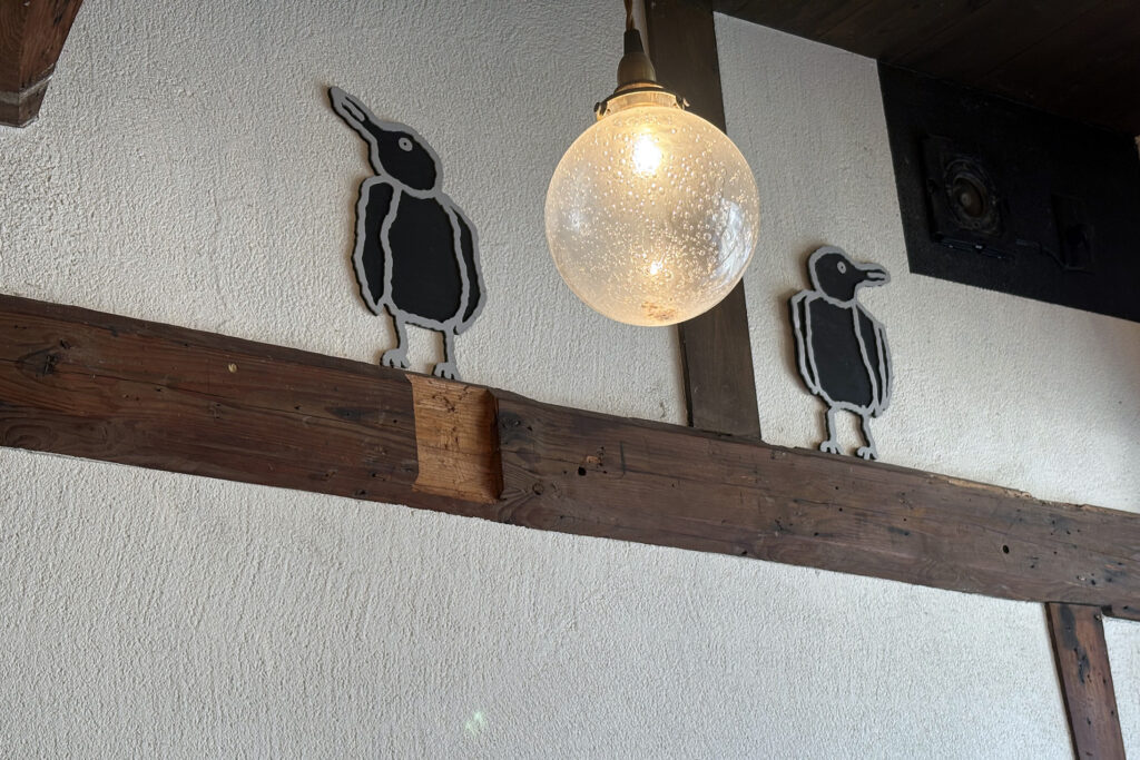 「有馬温泉」は、神代の昔、大己貴命と少彦名命の二神が有馬の地に降臨した折、三羽の傷ついた鴉が水溜まりで水浴びをしてその傷が癒えたのを見て、この水たまりが実は効能たかい温泉だと判つたといふ伝説があり、この「土山人」では庇の上にも店内にも鴉の飾りがある。