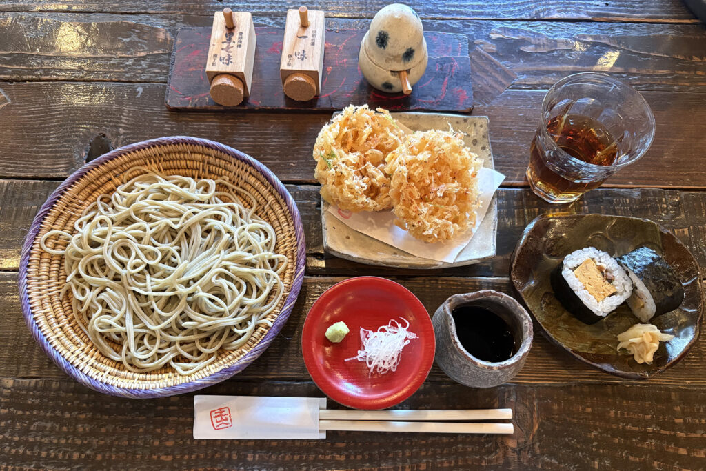 小生は、「有馬御膳」(蒸籠蕎麦・桜海老の掻き揚げ・太巻)を食す。