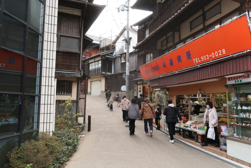 湯本坂の両側には、さまざまな店舗が建ち並ぶ。