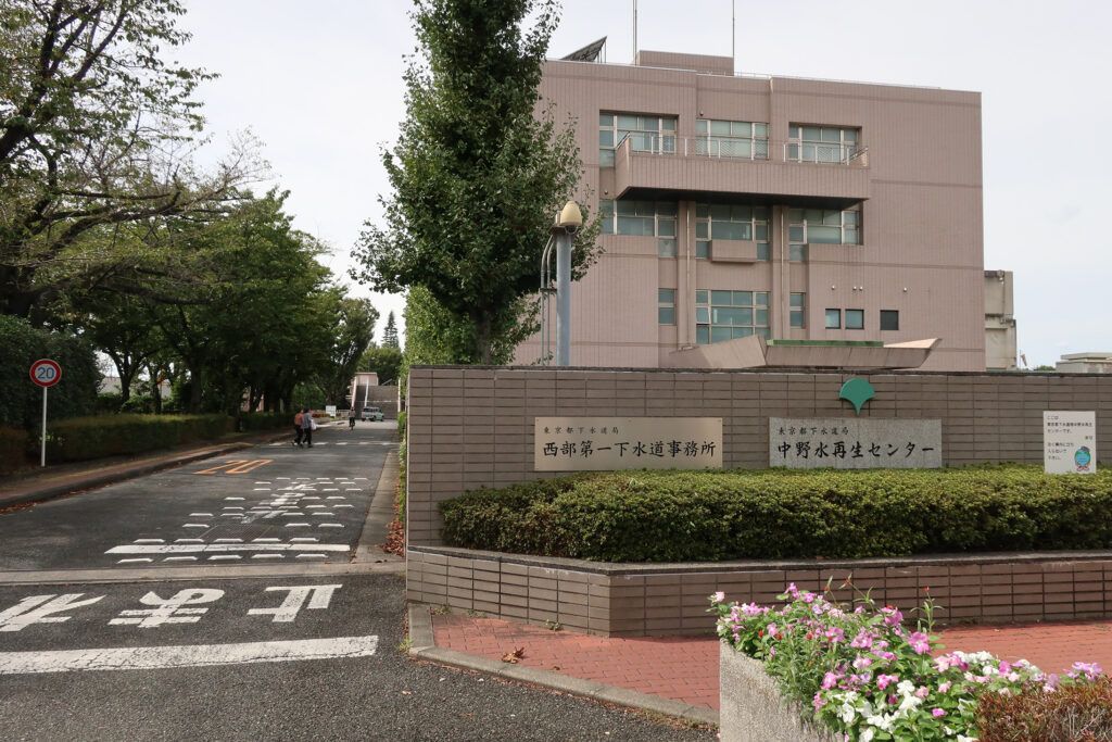 「平和公園通り」に面して、「平和の森公園」の隣には「中野水再生センター・西武第一下水事務所」がある。(ここも中野刑務所跡地である。)