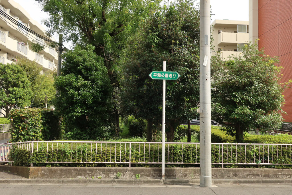 「新井天神 北野神社」を出て、「新井天神通り」をしばらく歩くと「平和の森公園」に至る。