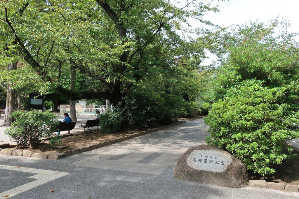 「新井薬師 梅照院」に隣接して北側は「新井薬師公園」になつてゐる。ベンチで寛ぐ人は勿論、池で釣りをする人などもゐて、近隣の人の憩いの場となつてゐる。