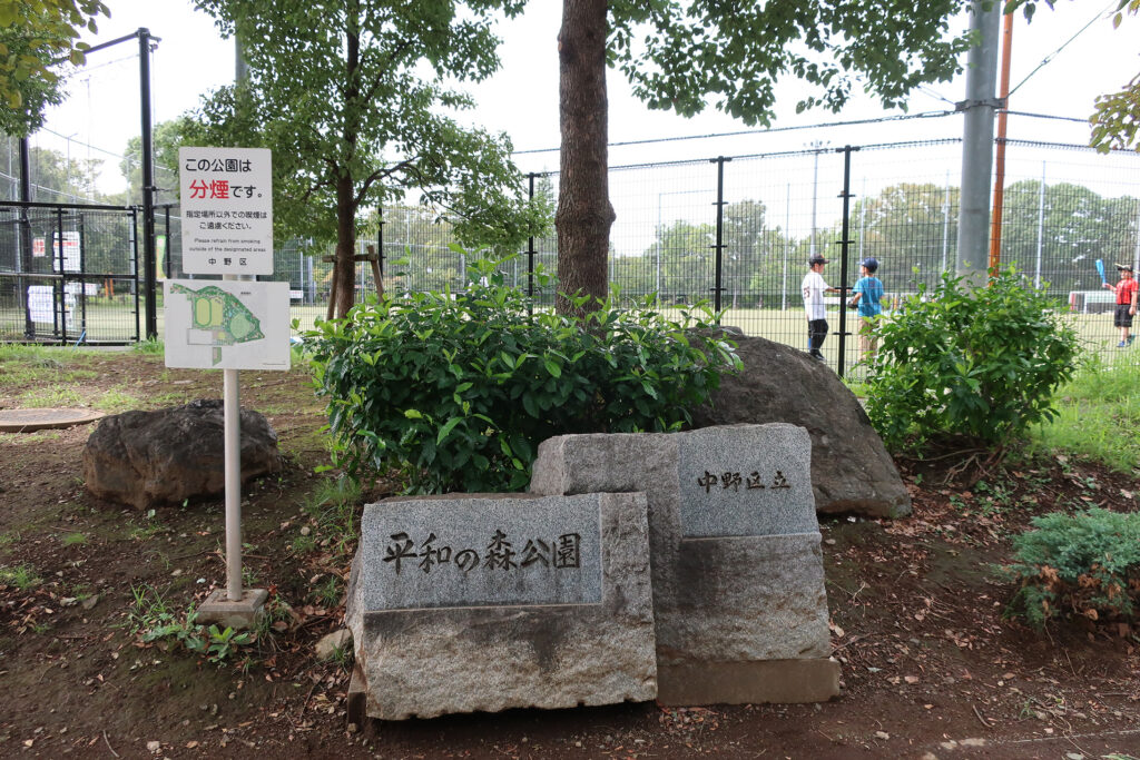 「平和の森公園」は、中野刑務所跡地に開設された区立公園で、多目的運動広場・草地広場・水辺広場・遊具広場などがあり、一角には「中野区立総合体育館」もある。(草地広場にはトラックもある。)