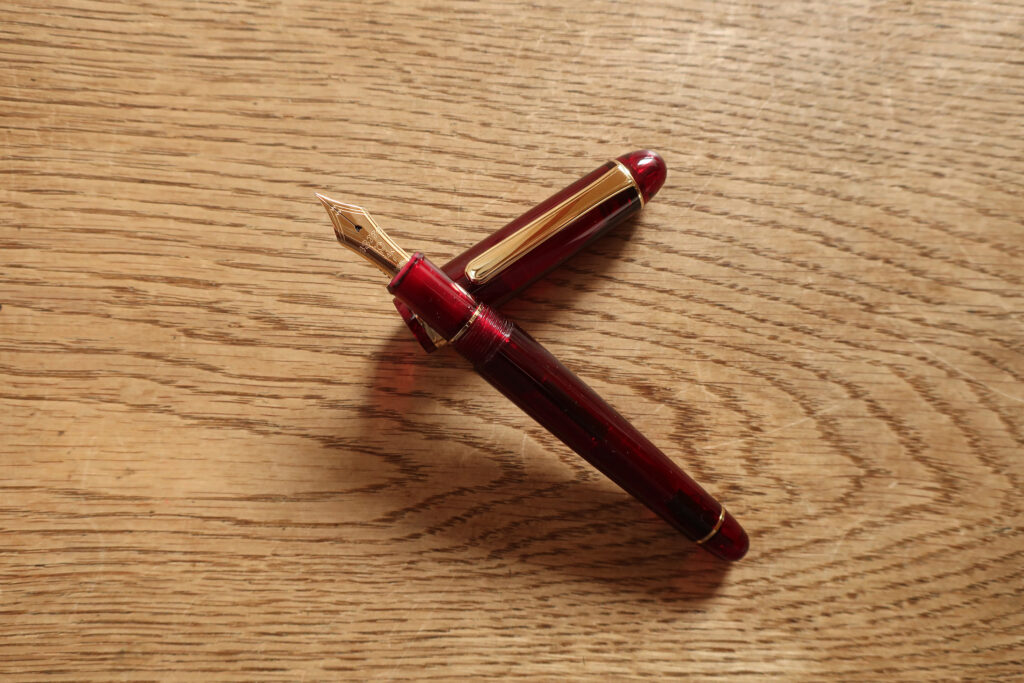写真は、小生の「#3776センチュリー ブルゴーニュ」である。実際に1年以上使用せずにゐても、インクが乾いてペン先が目詰まりすることはなく、スラスラと書くことができて感動した。上の引用にもある通り、インクの噴き出し防止と乾燥防止とを両立させることは、かなり困難だつたと思ふが、それを実現したPLATINUMの技術力と努力に敬意を表したい。