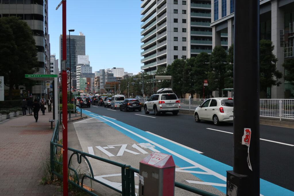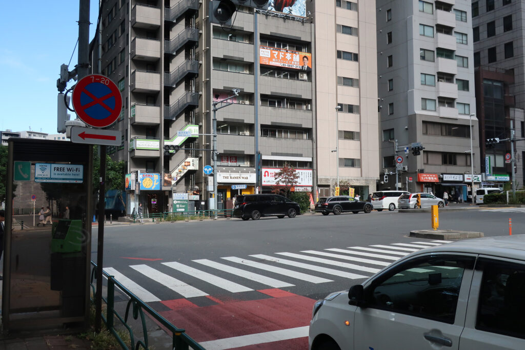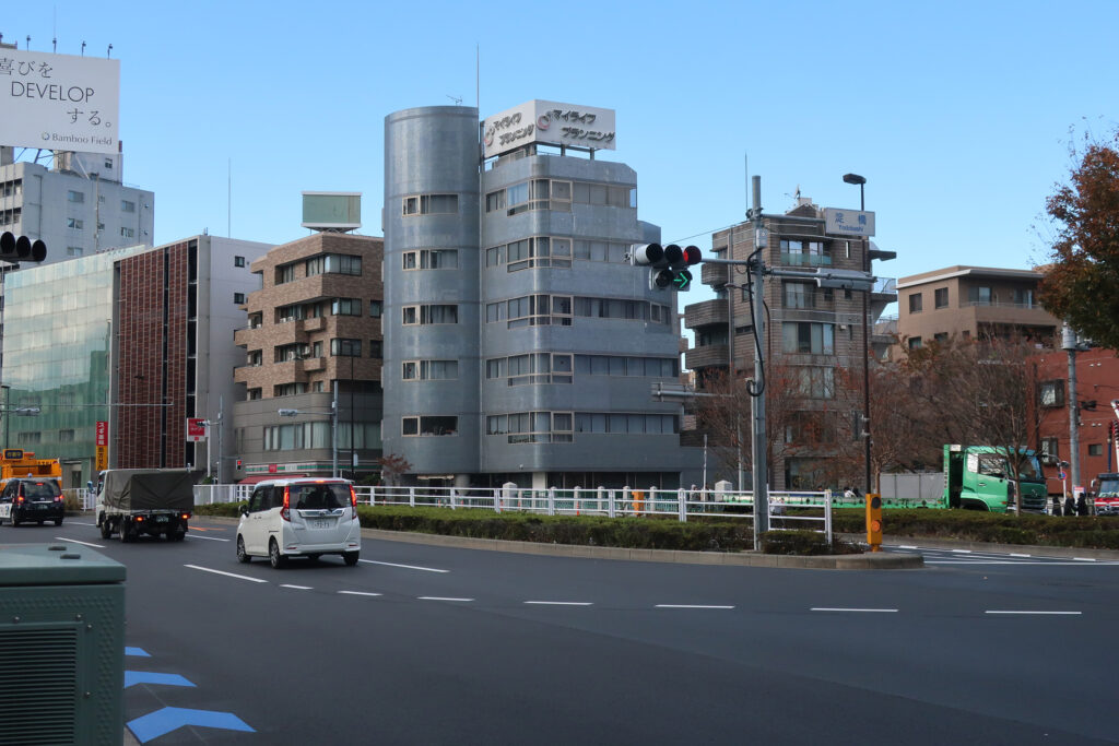 「SHUKNOVA」の傍らの公園通りを北上すると、「成子天神下」交叉点で青梅街道(都道4号)に突き当たる。