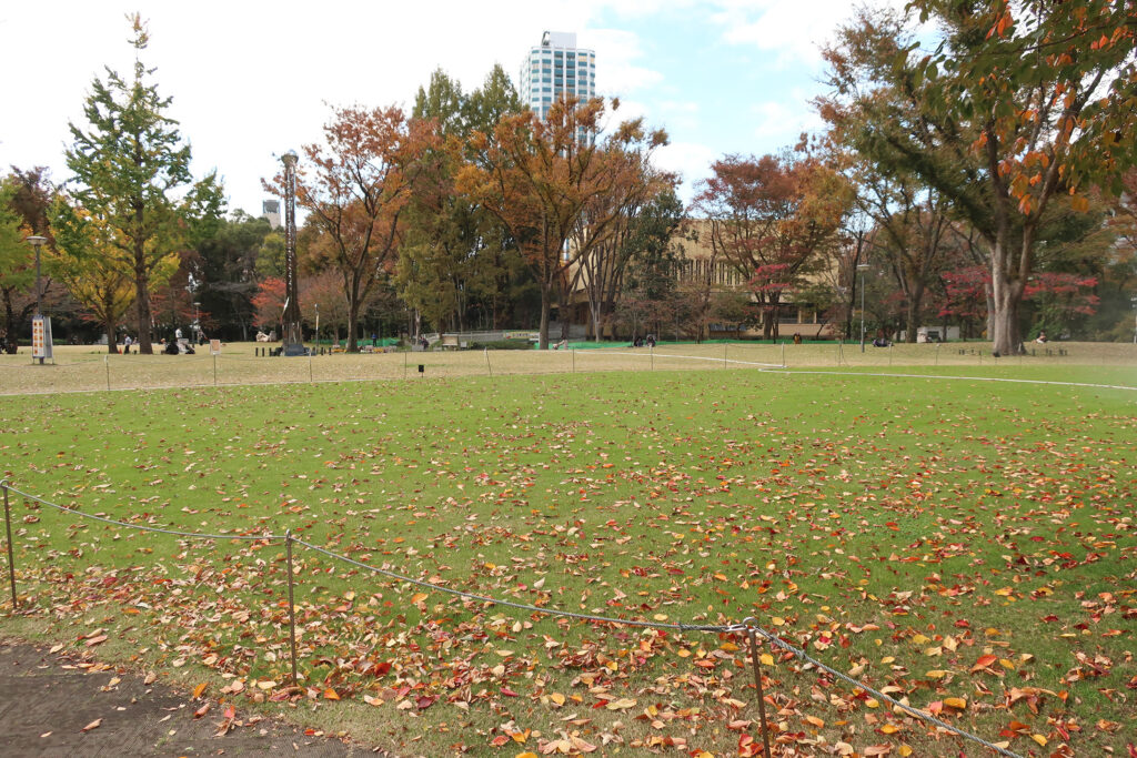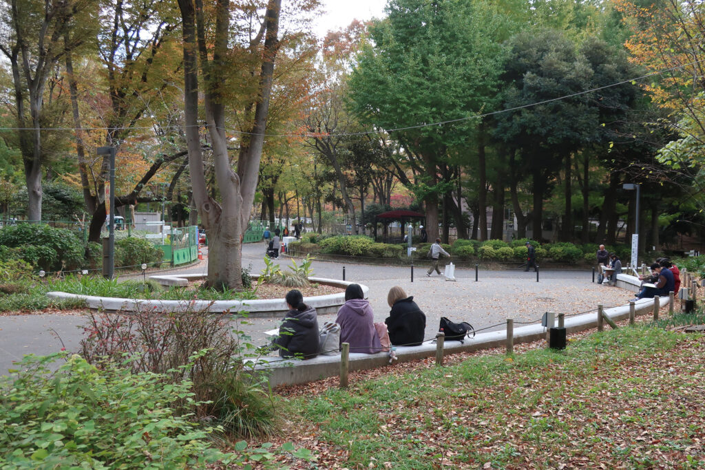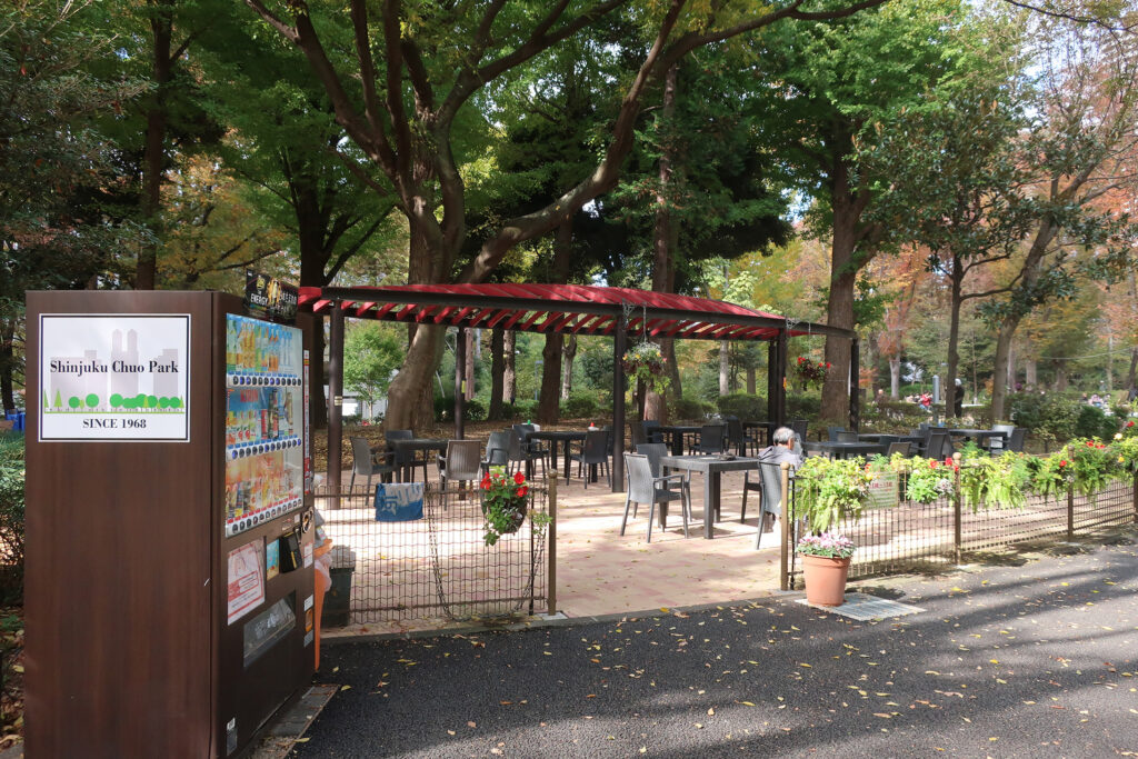「ランチコーナー」と呼ばれるエリアには、テーブルと椅子が置かれてゐる。「ランチコーナー」に限らず、天気の好い日の午時には、都庁や近くのオフィスで働く人たちが公園で弁当を食べてゐる。