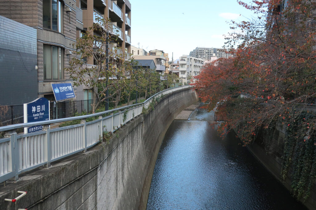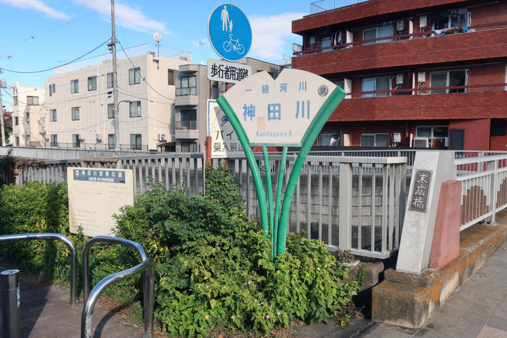 「末広橋」の辺で、「桃園川」(現在は暗渠になつてゐる)が「神田川」に合流してゐる。阿佐ヶ谷・高円寺間を起点とする「桃園川緑道」は、ここで終はる。