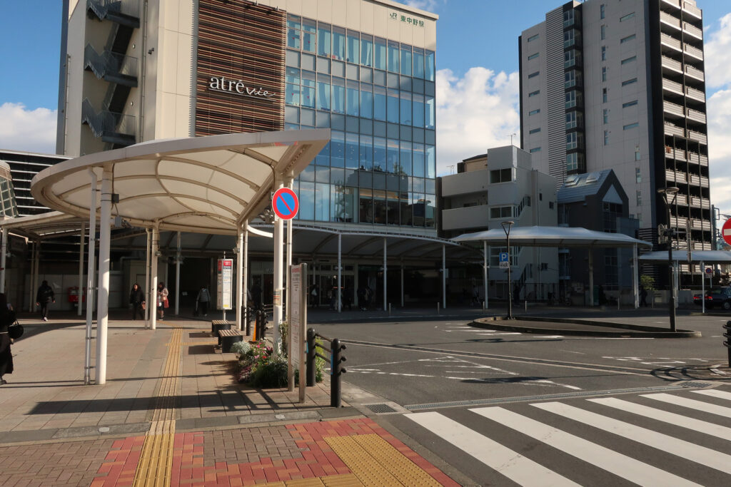 JR「東中野駅」西口は、都営大江戸線「東中野駅」に接続してゐる。東京は、南北の交通の便が悪いのだが、大江戸線は、「中井駅」で西武新宿線に、「練馬駅」で西武池袋線に接続してゐて、中野・杉並から西武線方面に行くには便利である。