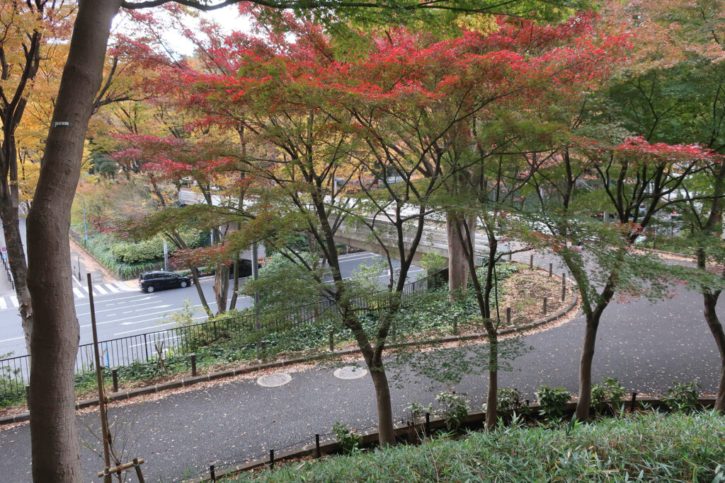 2階出入口を出ると、「第2庁舎」との間は広場になつてゐる。樹々が黄葉してゐる。