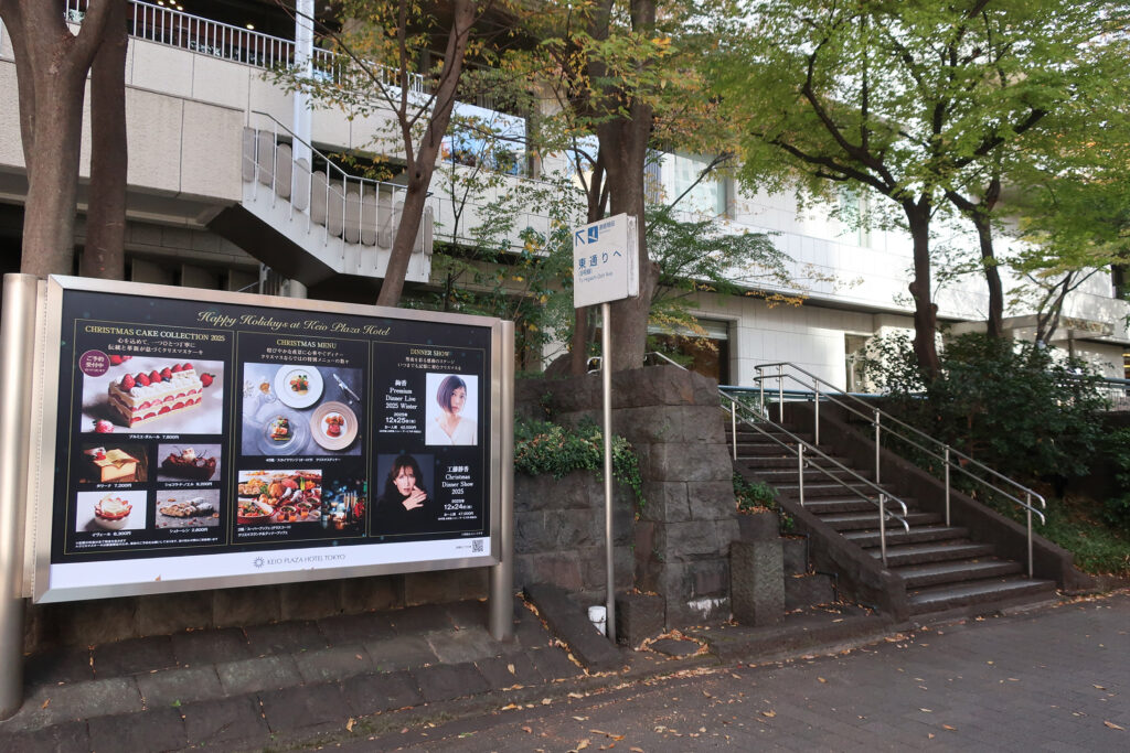 途中で地上に出ると、「京王プラザホテル」で、中央通りに面してレストラン「オールデイダイニング 樹林」がある。