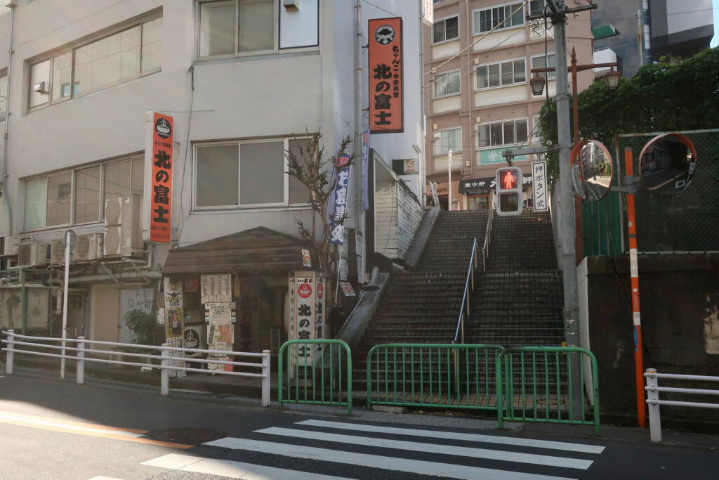 「Le Ptit Oiseau」の先、駅前に向かう階段の脇にはちやんこ料理店「すもう食酒屋 北の富士」がある。店名の通り、第52代横綱・北の富士ゆかりの店である。
