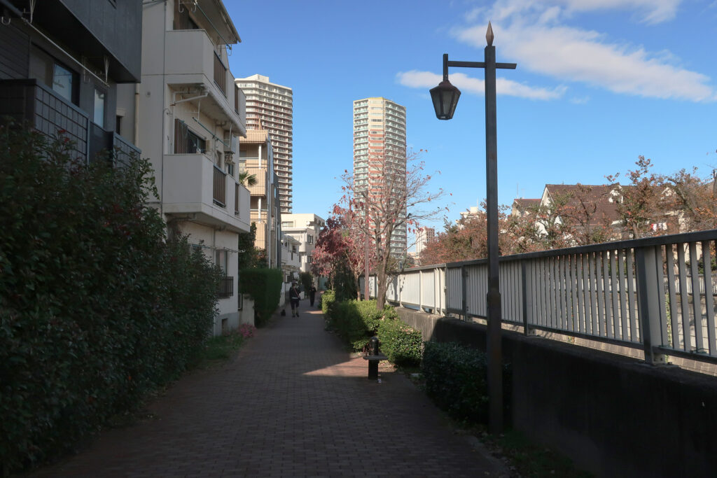 神田川沿に遊歩道がある。上流に向かつて左側(中野区側)の道は「神田川四季の道」といふ。