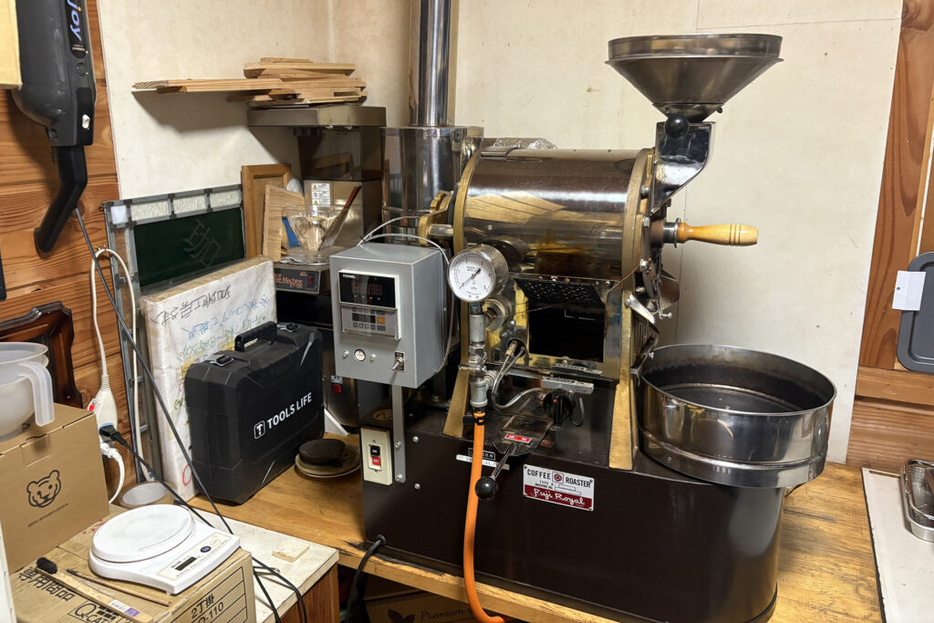 特別に店舗の奥の焙煎機を見せてもらつた。ここで焙煎する際に、雑味の原因となる不良な豆は取り除いて肥料等にするさうだ。珈琲ミルの高級機と廉価版の違ひなども教へてもらつた。