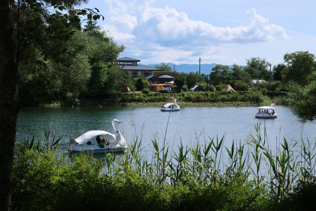「蓼科湖」は、昭和27年に農業用ため池として、また観光のメッカとして誕生した人造湖。小さな湖だが、蓼科観光の中心地で、周囲には、ペンション・旅館・レストラン・売店などさまざまな施設がある。湖では、ボート遊びもできる。