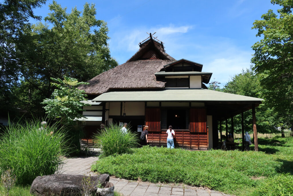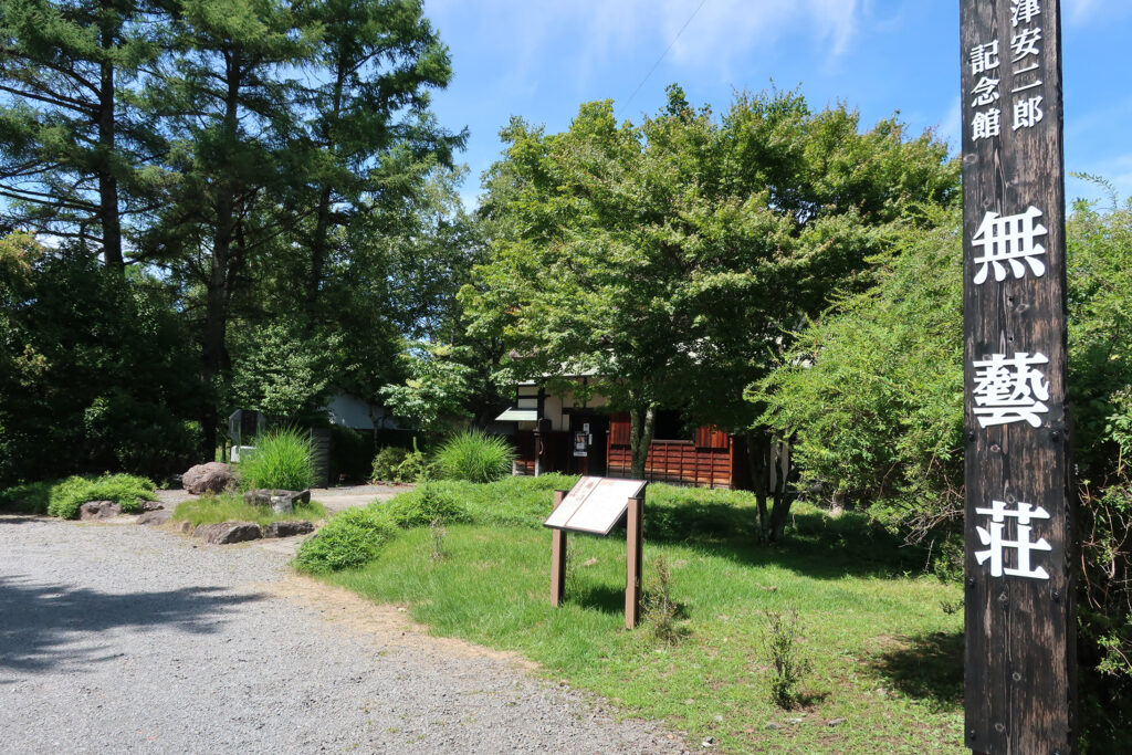 ロープウェイを降り、来る時に見掛けた「小津安二郎記念館 無藝荘」に立ち寄る。「無藝荘」は、小津安二郎が蓼科の別荘として利用してゐた茅葺き屋根の建物で、仕事場や接待の場として使用した。「無藝荘」が元々あつた場所は、現在の地から1km程離れた所だが、2003年に小津生誕100年を記念して建物の保全のために茅野市によつて移築されたといふ。囲炉裏や風呂・手洗ひ場の風情も当時の姿のままに再現し、蓼科観光協会によつて維持管理されてゐる。小津が晩年を過ごした蓼科では、「小津安二郎記念 蓼科映画祭」が催され、小津が盟友の脚本家・野田高梧と日に何度となく散歩した疎林は「小津の散歩道」として整備されてゐる。(小津安二郎の映画は、恥づかしながら、若い頃に「東京物語」や「秋刀魚の味」など何作か観ただけ。改めて観直してみようかな。)
