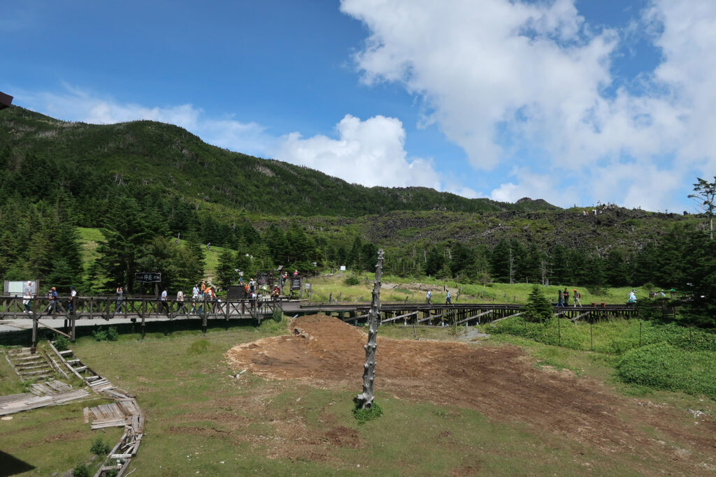 「山頂駅」には「坪庭自然園」があり、散策コースが整備されてゐて、一周30〜40分で手軽に登山気分が味はへる。「坪庭」は、横岳の噴火で噴出した溶岩が固まつてできた溶岩台地に、自然に植物が生えて出来た庭園ださうだ。季節ごとにさまざまな高山植物が咲く。(山頂駅からはさまざまなコースでの登山も可能だが、指定登山道での登山は「登山計画書」の届出が必要。)