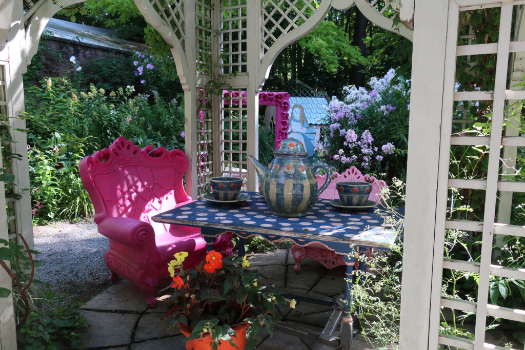 まづ「BARAKURA English Garden」に行く。「BARAKURA English Garden」は、英国庭園を広めたパイオニアのケイ山田が日本初の本格的英国式庭園として1990年に開園。ケイ山田は、「丸の内三菱一号館」(先日「三菱一号館美術館」の「ルノアール×セザンヌ」展を観てきた)の中庭や新潟県見附市の産業団地内の庭園の監修などもしてゐる。薔薇だけでなく、四季を通じて花が咲き変はるやうにデザインされてゐる。(「バラクラ」は、「バラ色の暮らし」の略ださうだ。)庭園は区画ごとにコンセプトがあり、テーマガーデン『不思議の国のアリスの庭』などもある。カフェレストランやベーカリーショップなどもあり、ガーデニングスクールも実施してゐる。